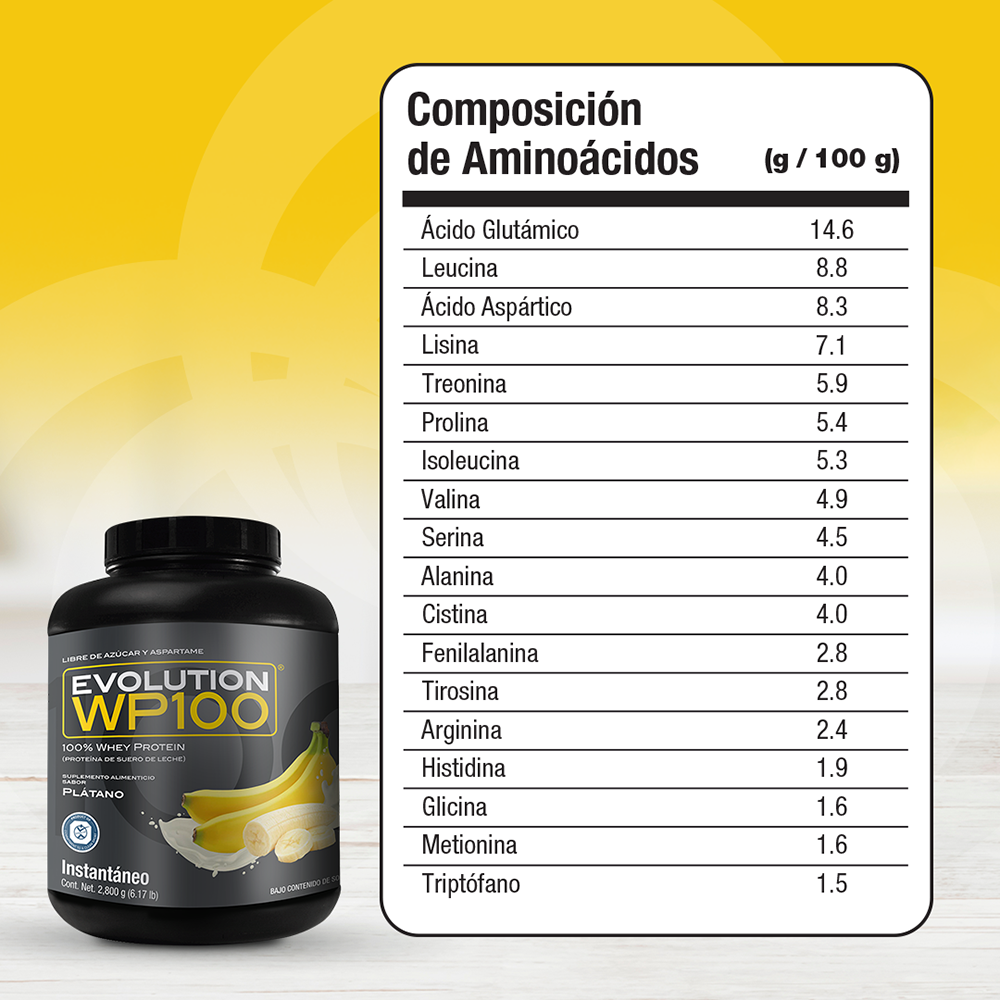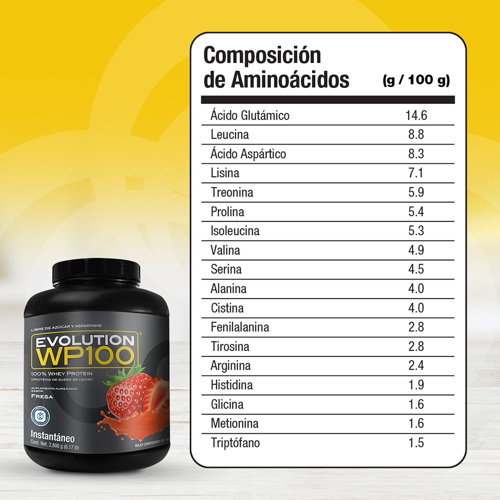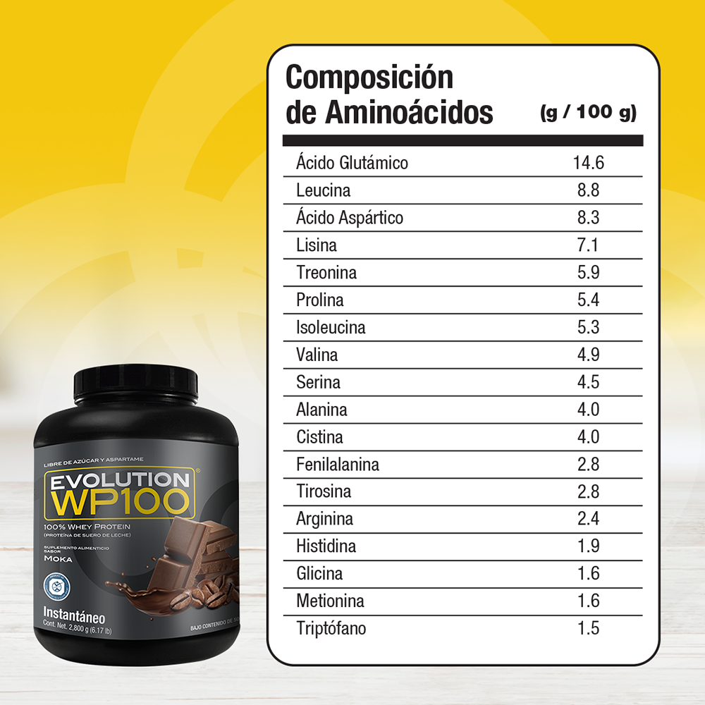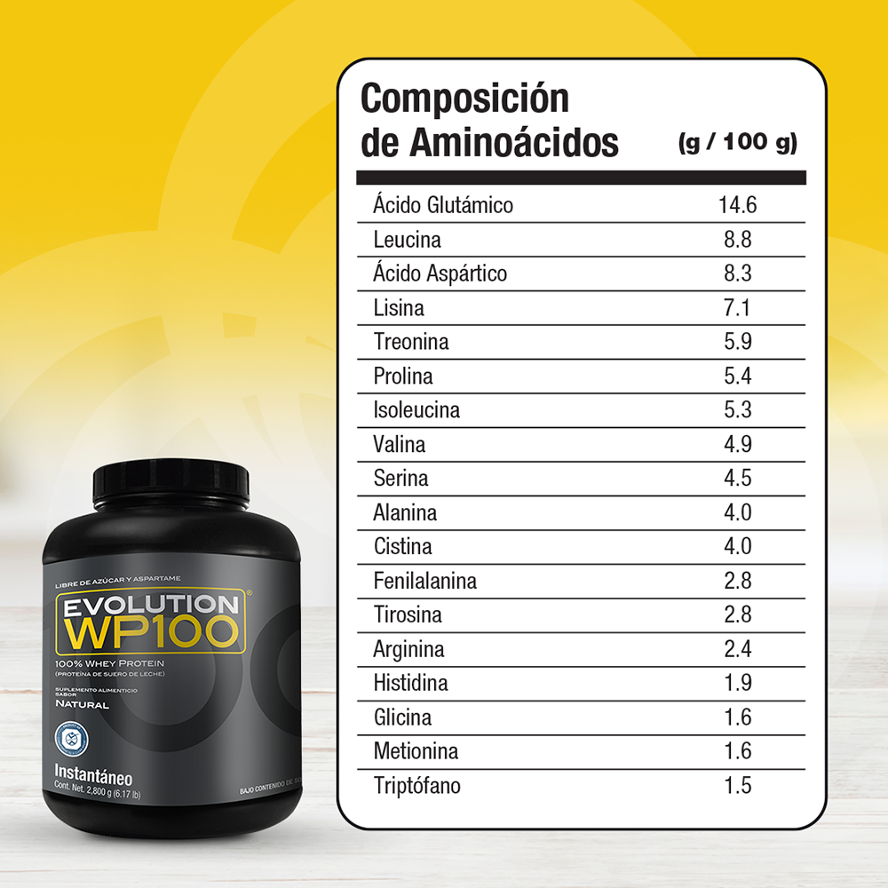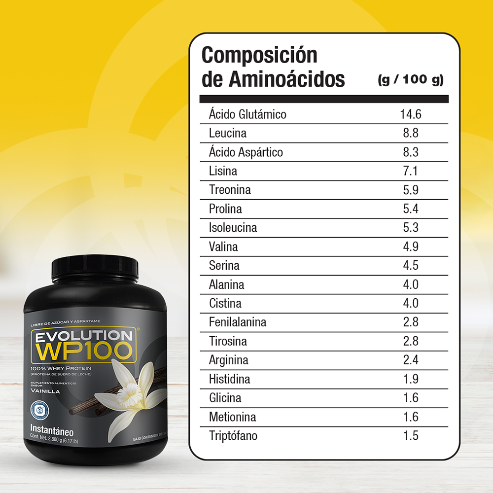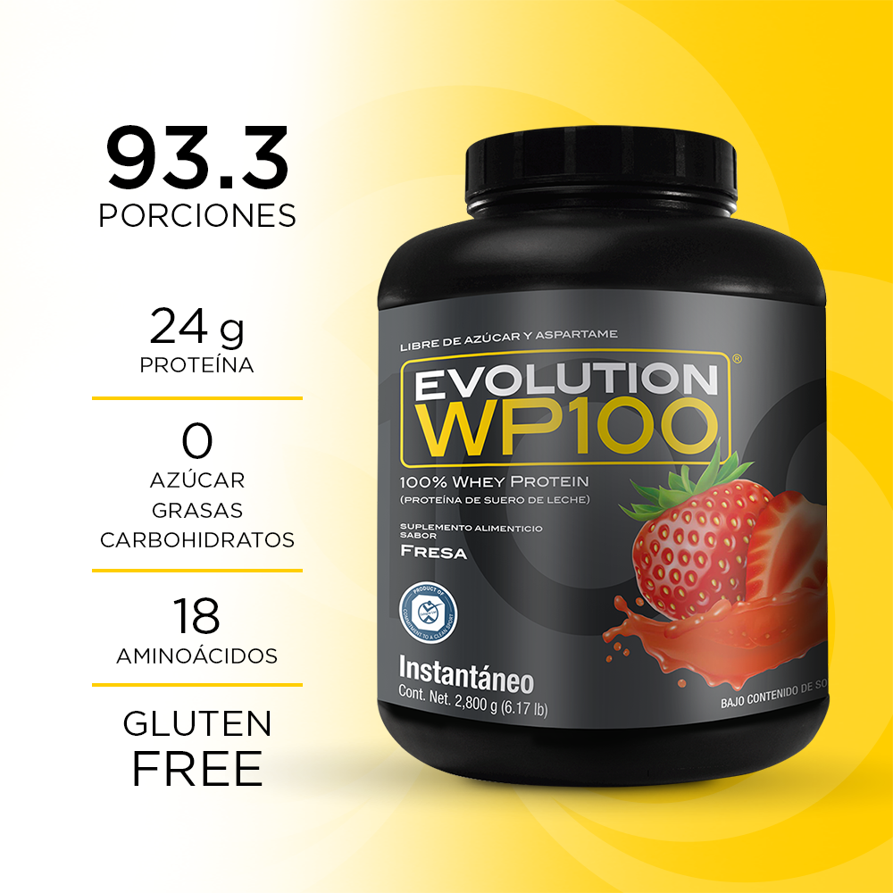 Precio regular $ 1,983.00 MXNWP100 EVOLUTION es una proteína aislada de suero de leche microfiltrada y ultrafiltrada que le caerá bien a tu cuerpo por lo ligero que es, te ayudará a lograr tus metas y objetivos mientras disfrutas desus 7 deliciosos sabores, además del natural.