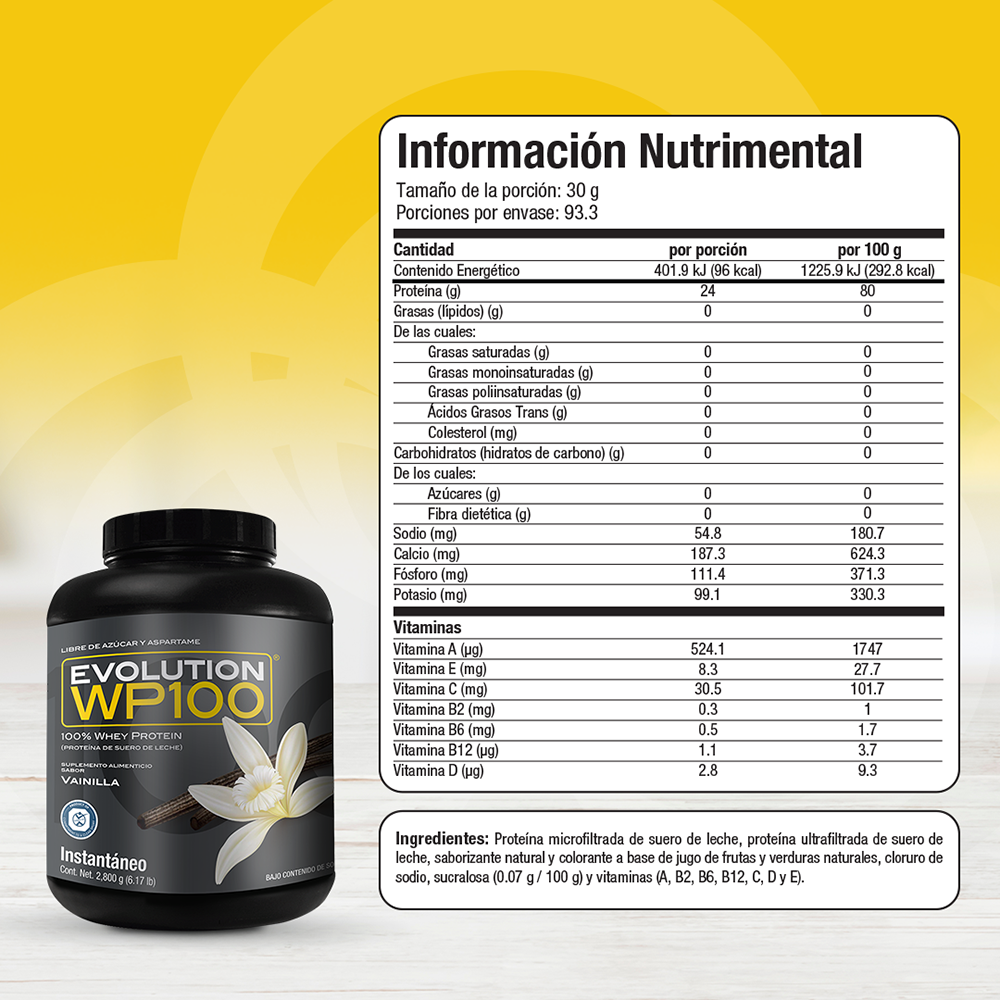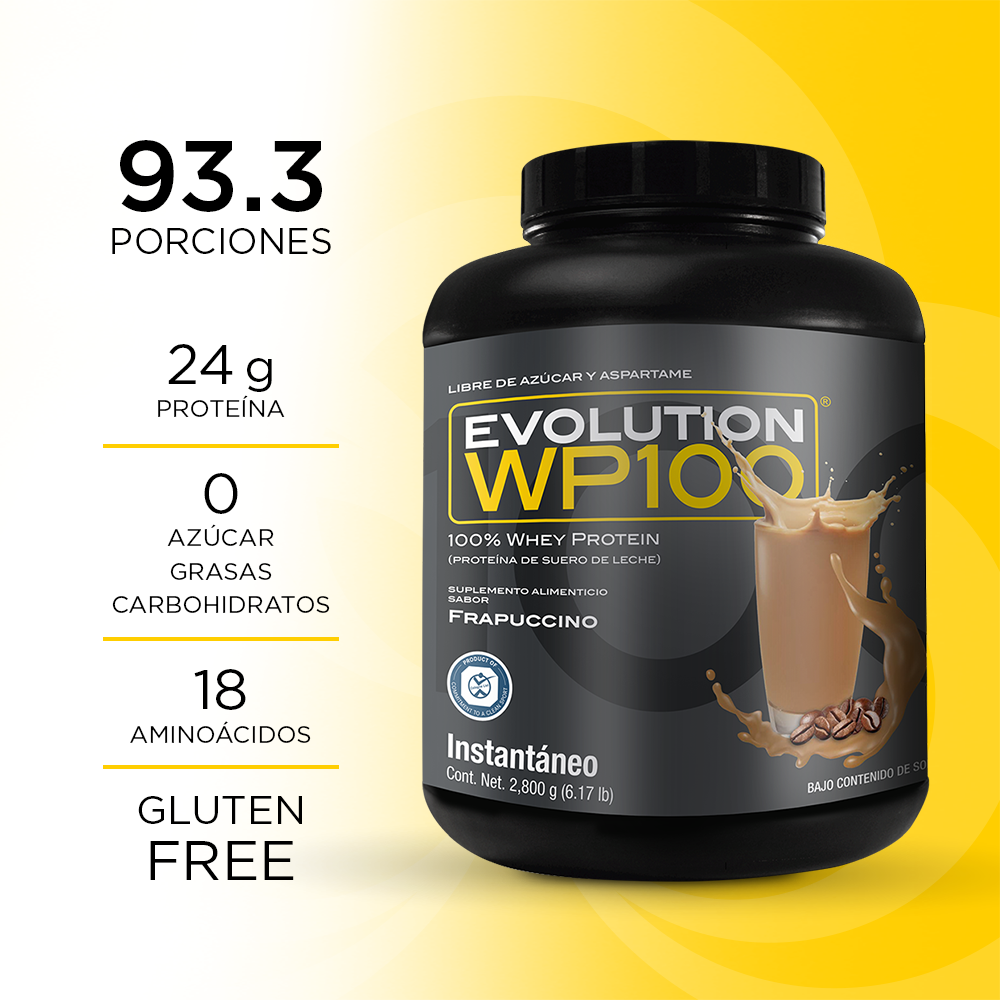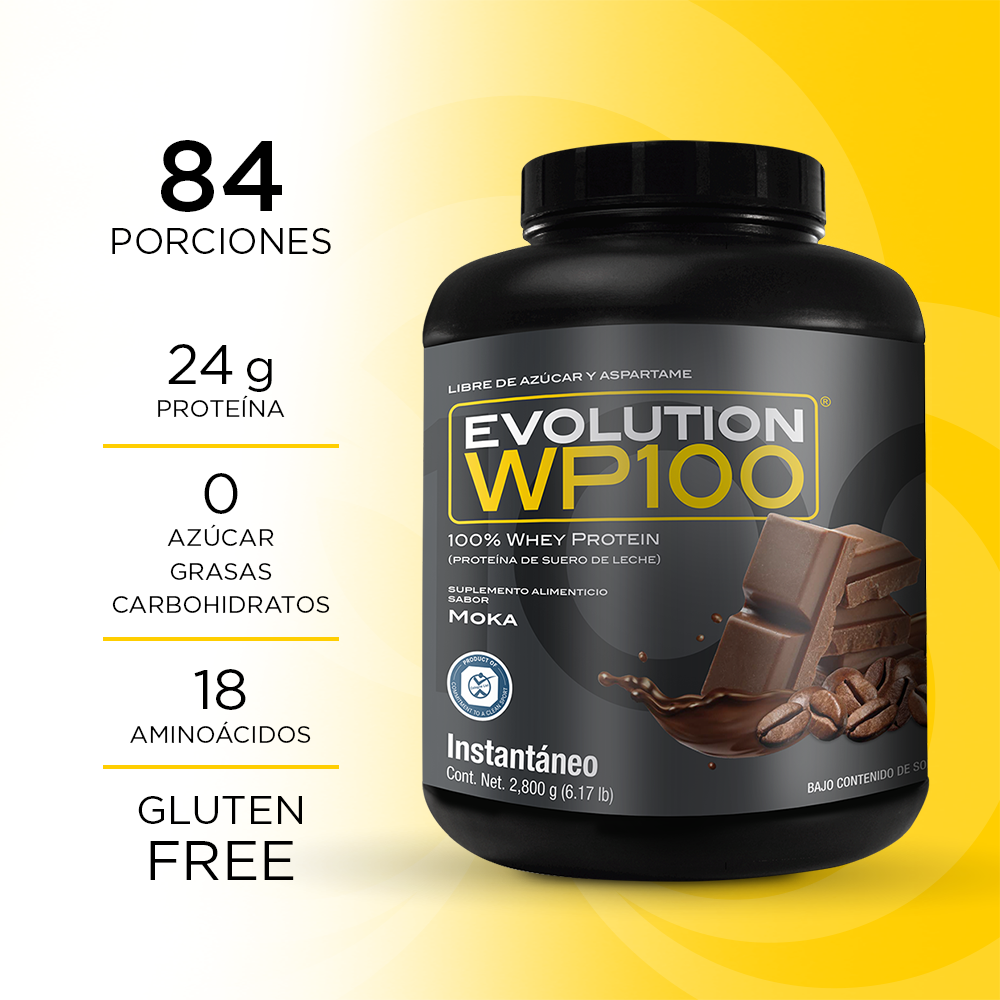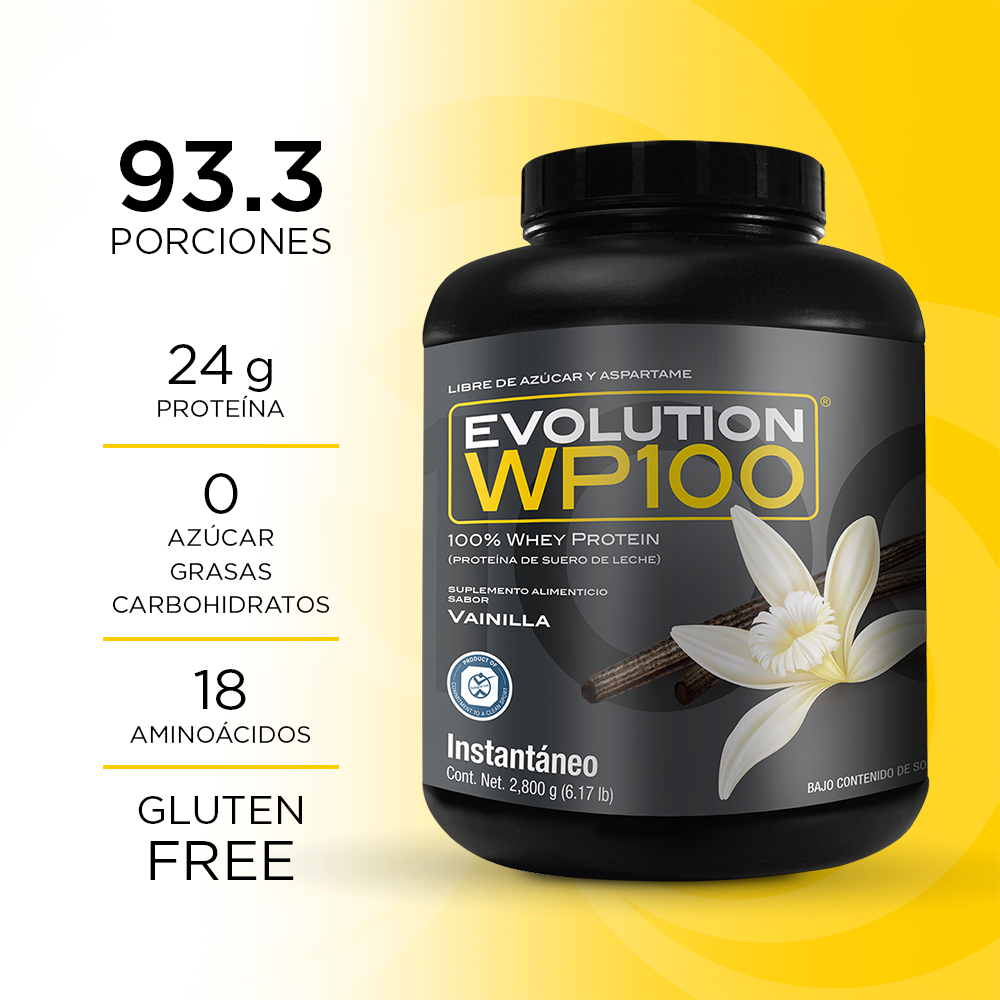 WP100 EVOLUTION es una proteína aislada de suero de leche microfiltrada y ultrafiltrada que le caerá bien a tu cuerpo por lo ligero que es, te ayudará a lograr tus metas y objetivos mientras disfrutas desus 7 deliciosos sabores, además del natural.