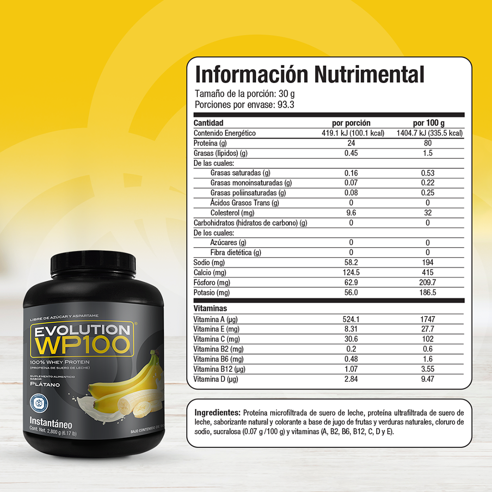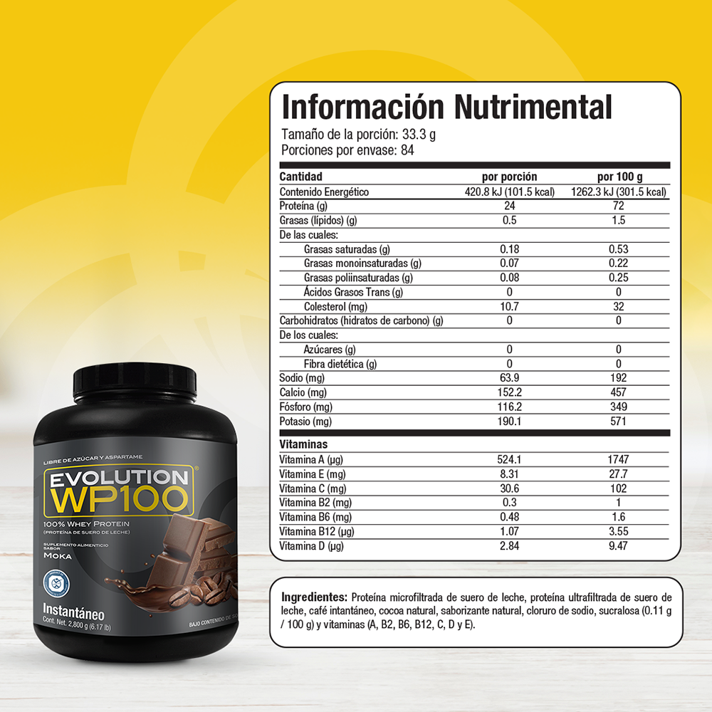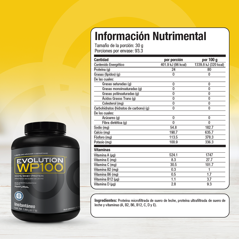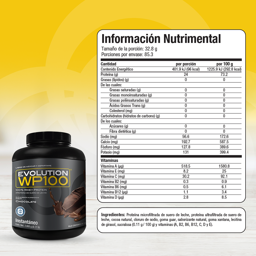 WP100 EVOLUTION es una proteína aislada de suero de leche microfiltrada y ultrafiltrada que le caerá bien a tu cuerpo por lo ligero que es, te ayudará a lograr tus metas y objetivos mientras disfrutas desus 7 deliciosos sabores, además del natural.