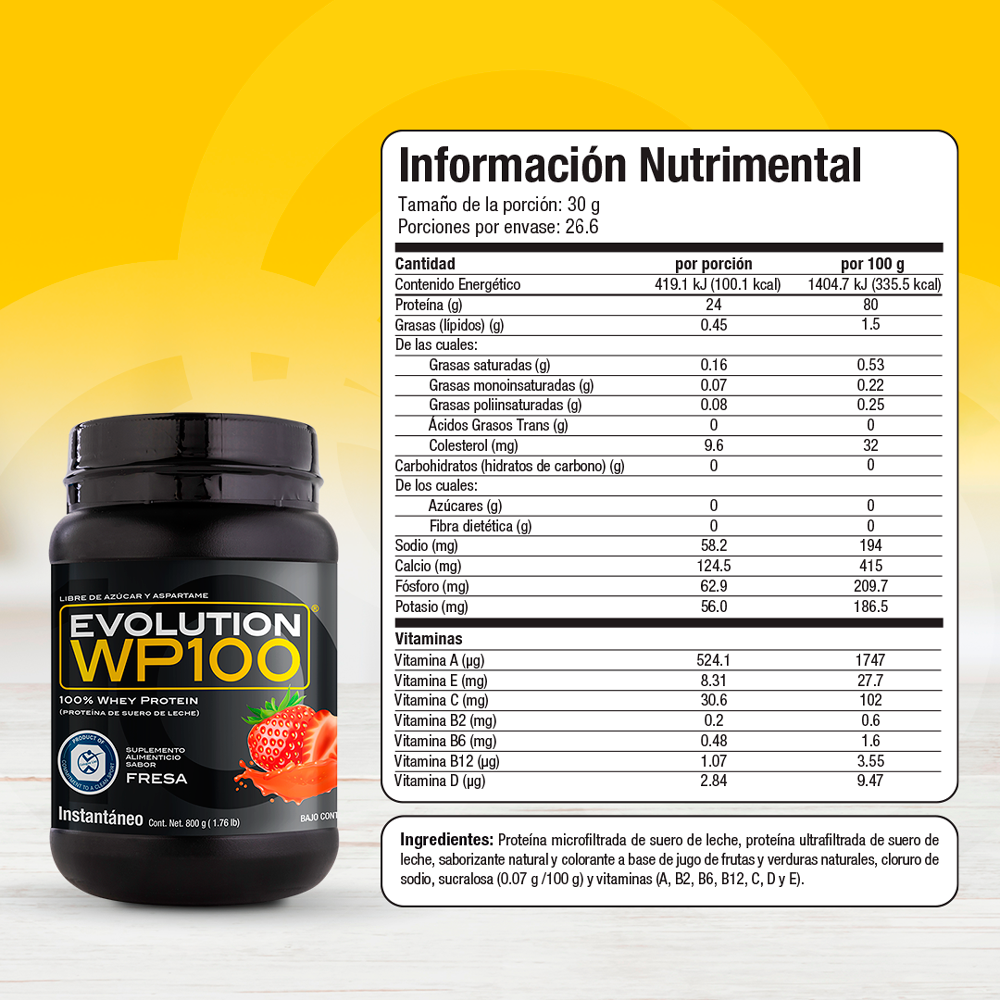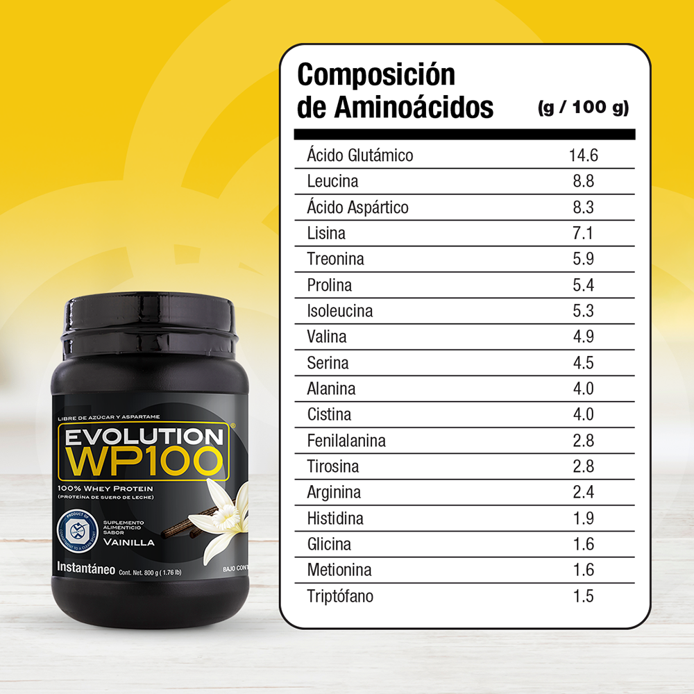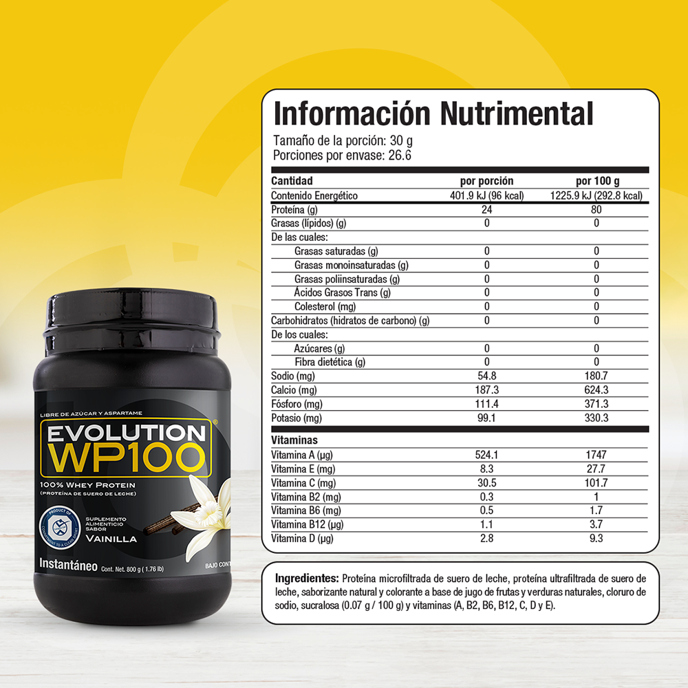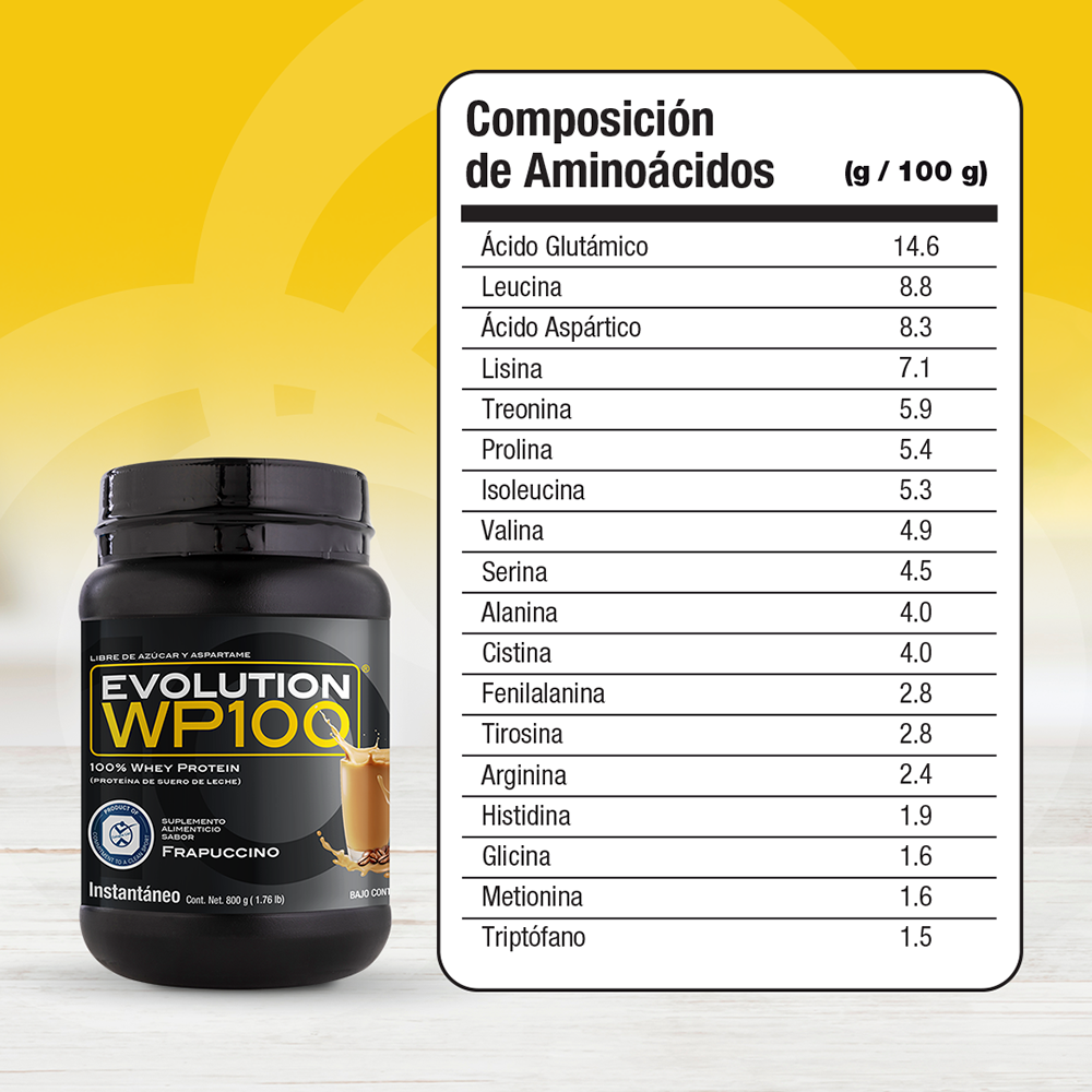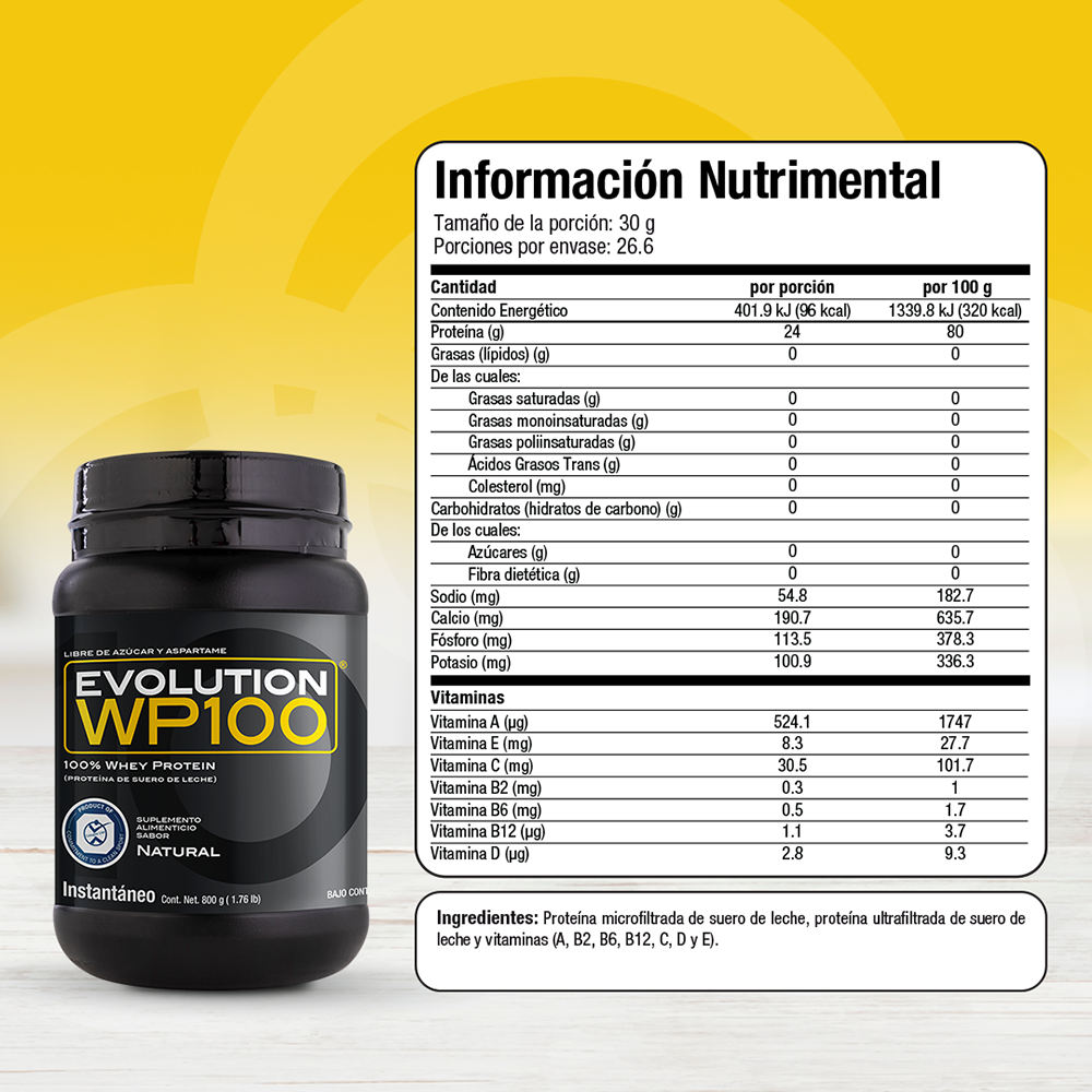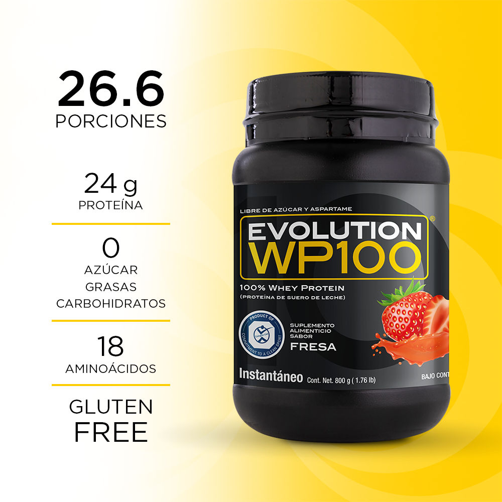 WP100 EVOLUTION es una proteína aislada de suero de leche microfiltrada y ultrafiltrada que le caerá bien a tu cuerpo por lo ligero que es, te ayudará a lograr tus metas y objetivos mientras disfrutas de sus 7 deliciosos sabores.