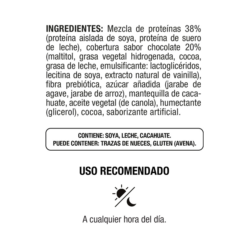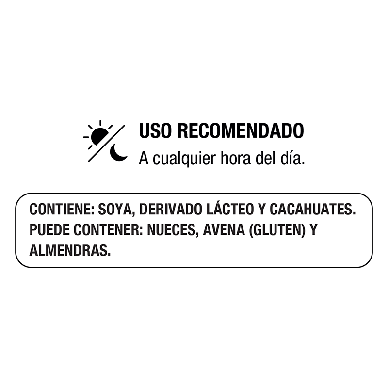 Se recomienda consumir 1 barra en cualquier momento del día.