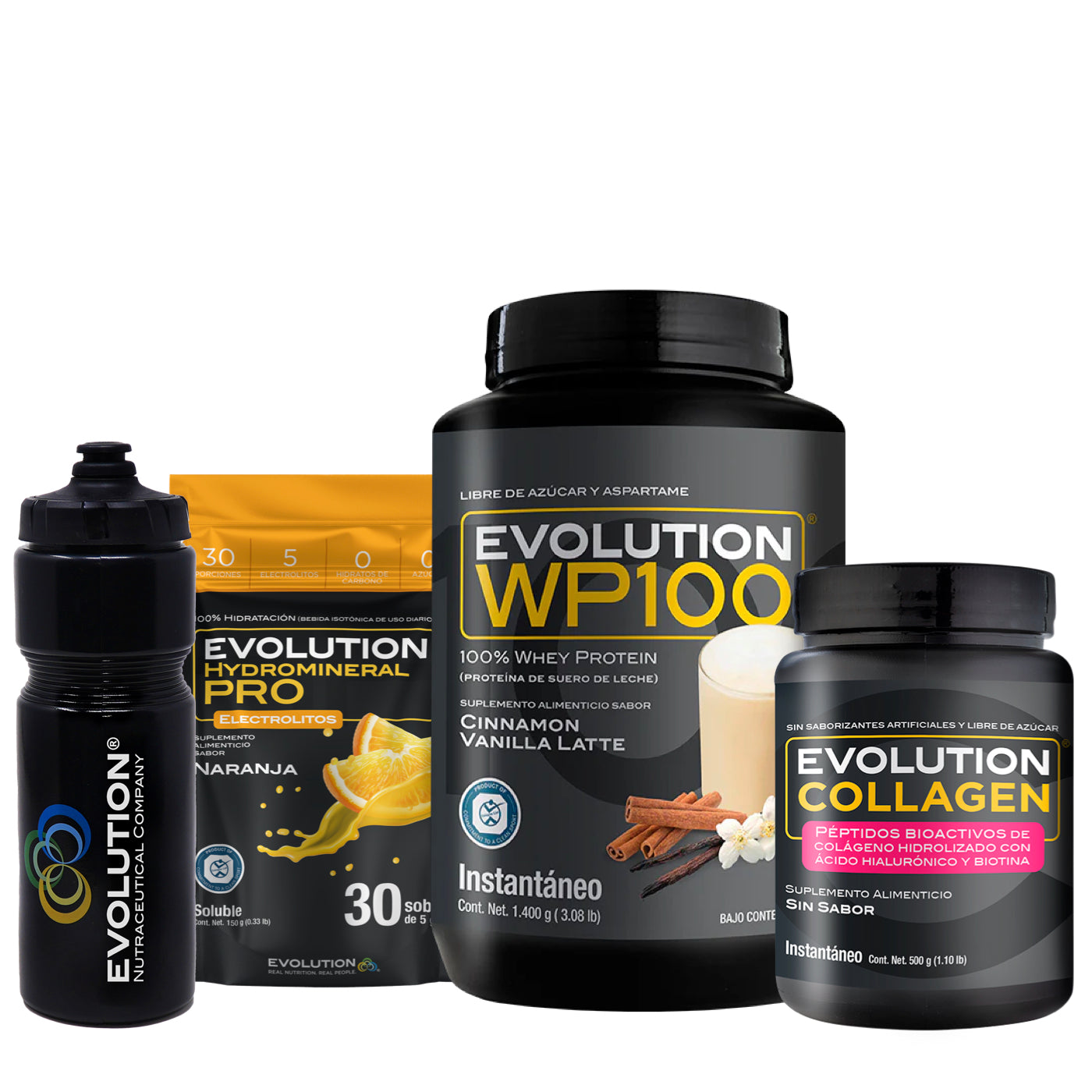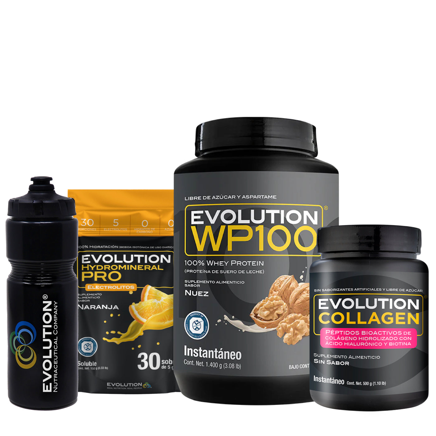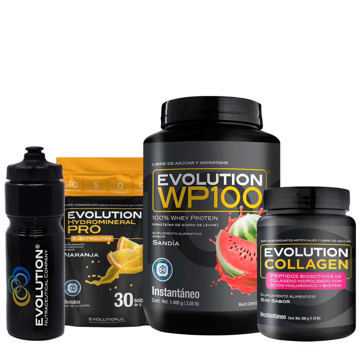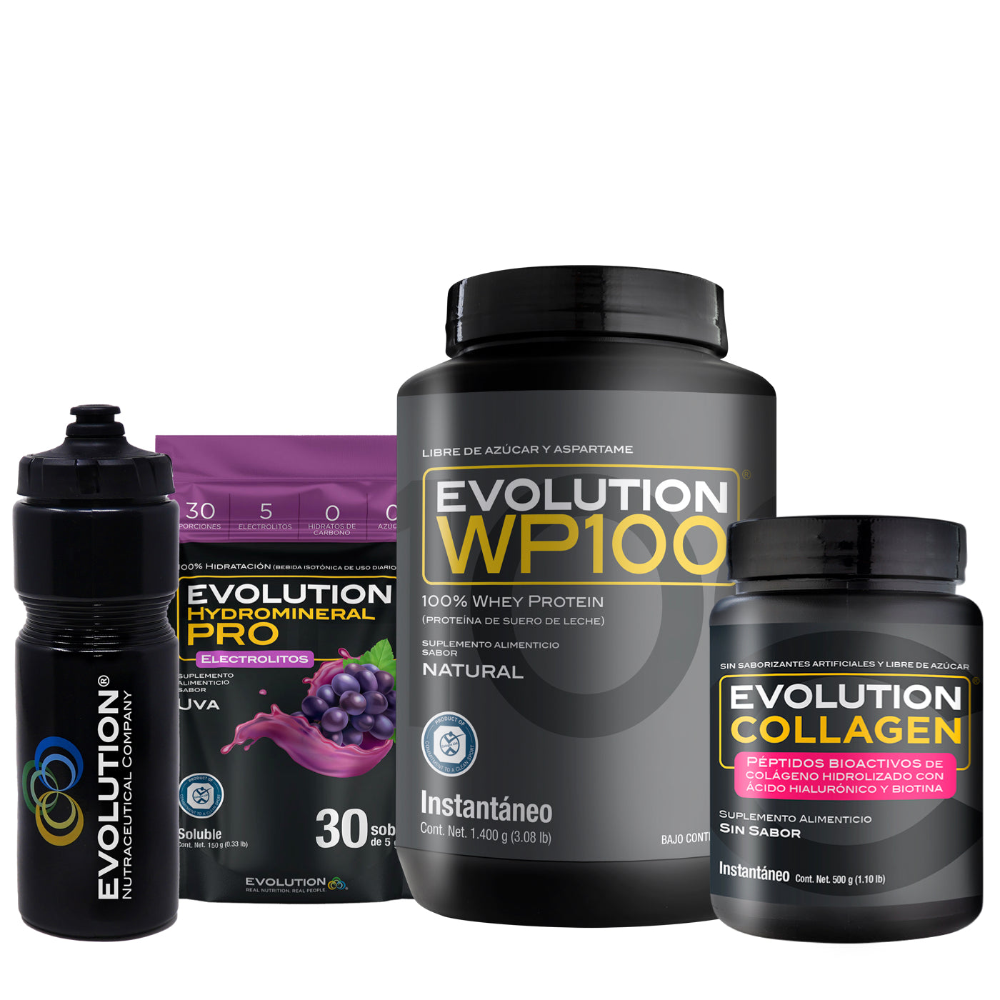 WP100 1,400 gramos + Colágeno Hidrolizado 500 gramos + Hydromineral Pro (electrolitos) Pack 30 sobres + (Squeeze 20 onzas de regalo 🎁)