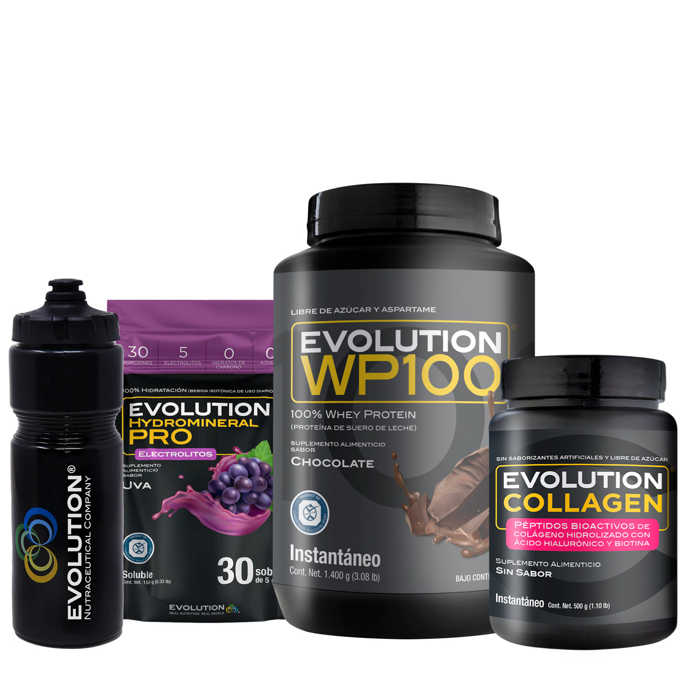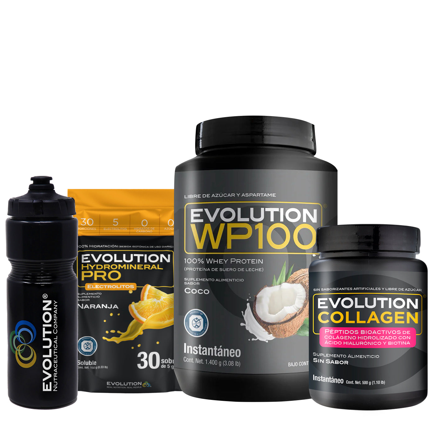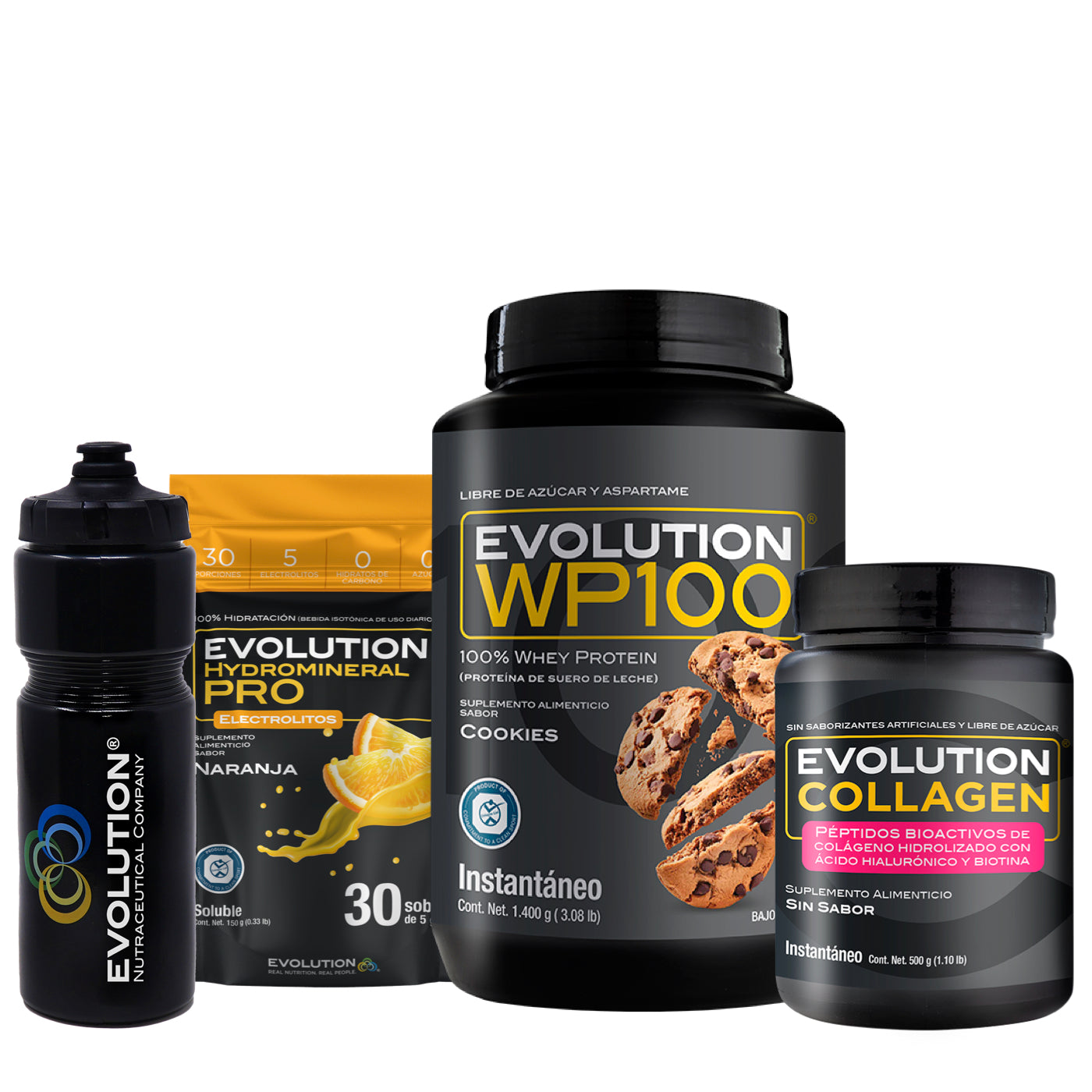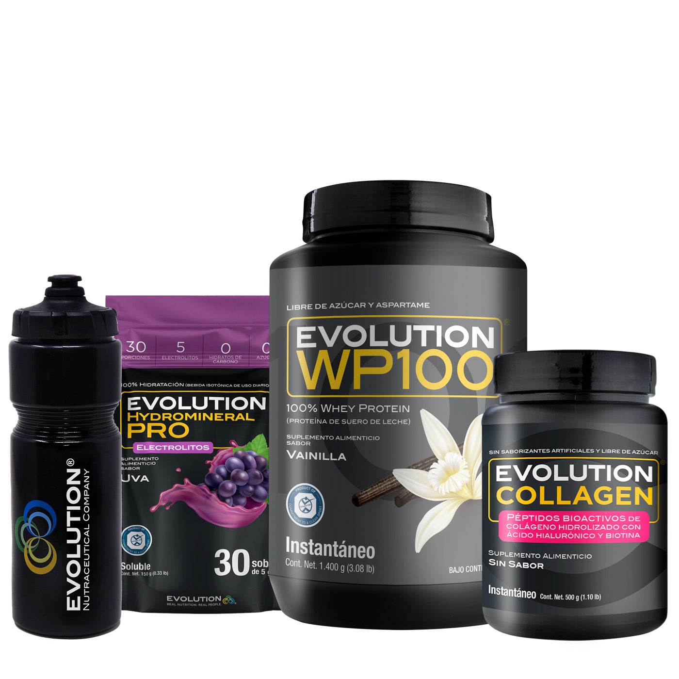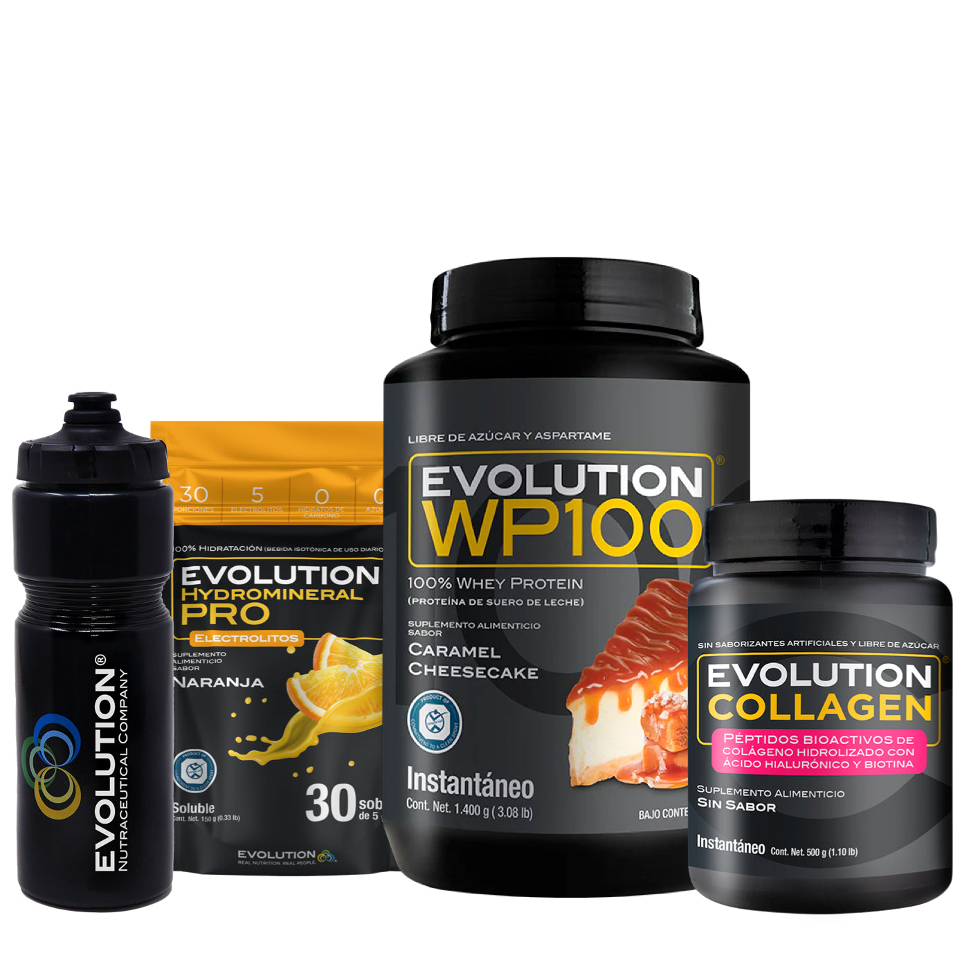 WP100 1,400 gramos + Colágeno Hidrolizado 500 gramos + Hydromineral Pro (electrolitos) Pack 30 sobres + (Squeeze 20 onzas de regalo 🎁)
