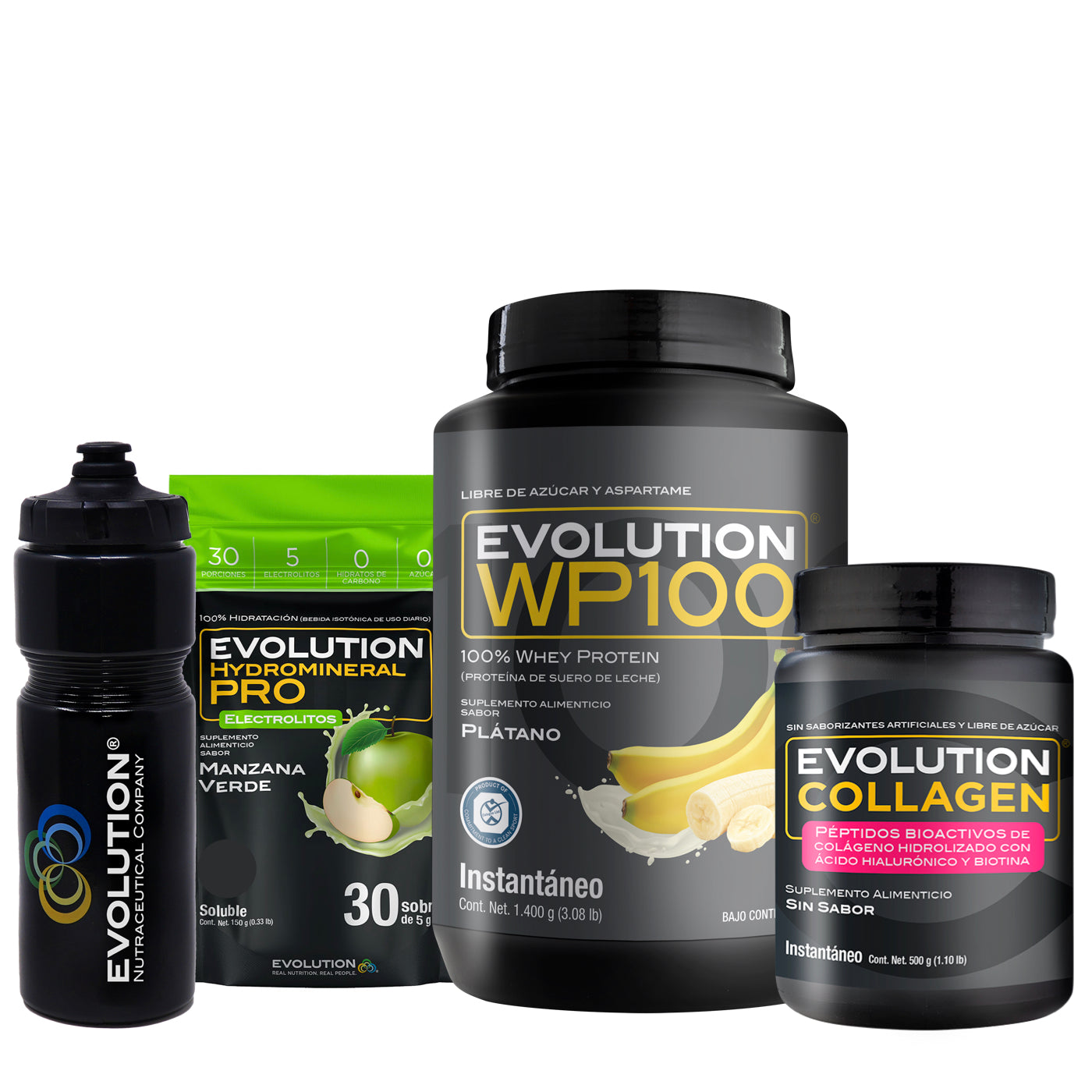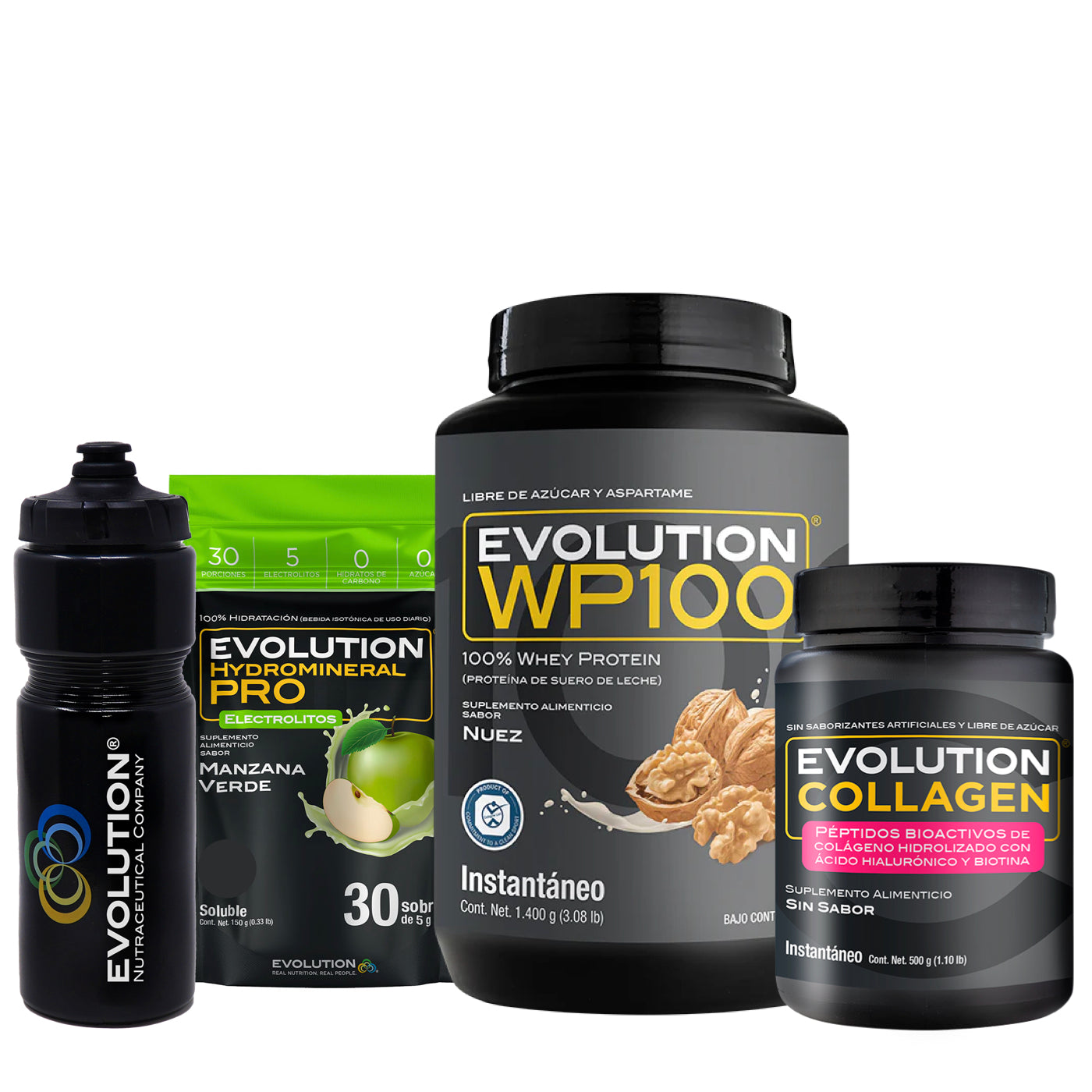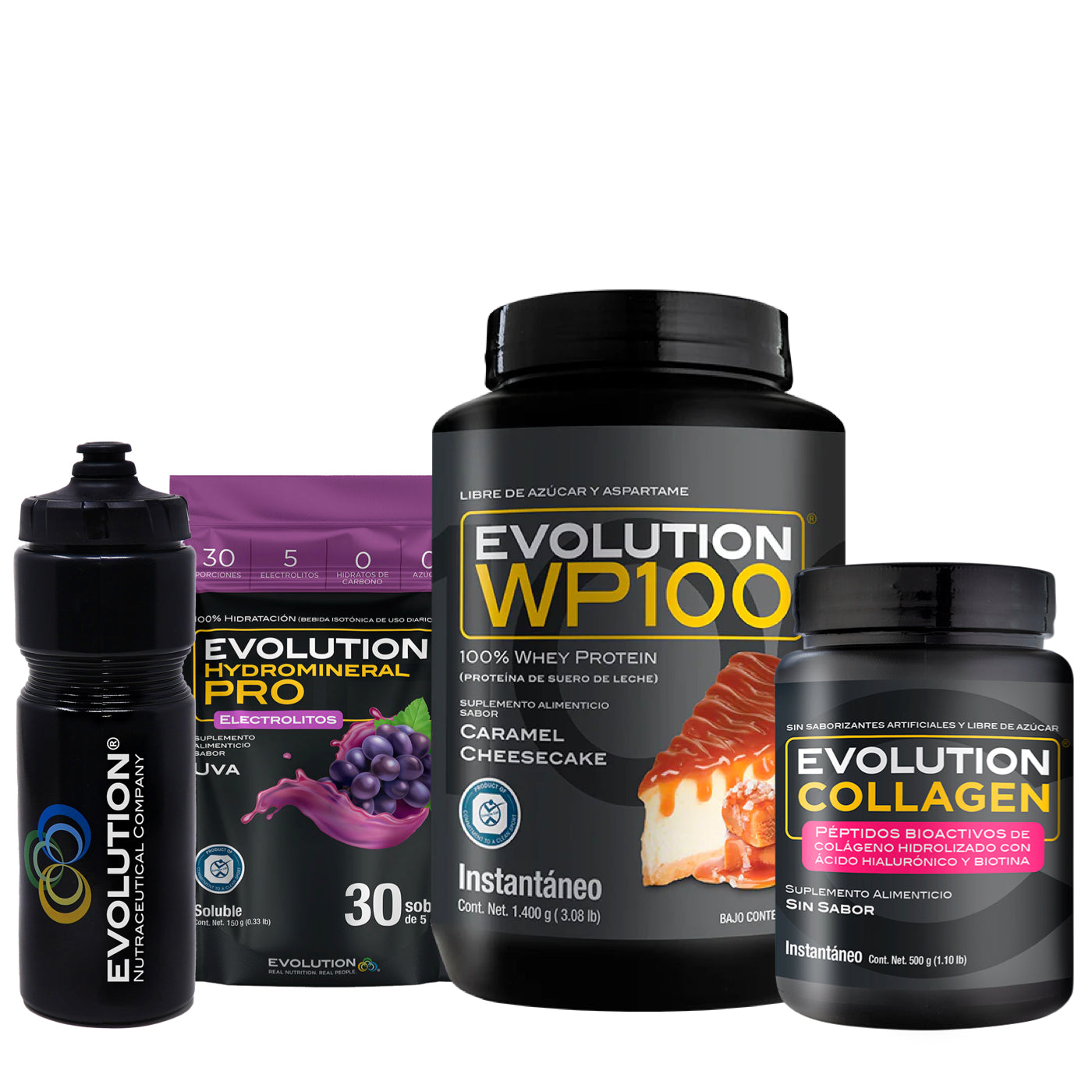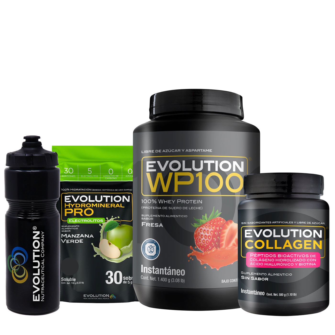 WP100 1,400 gramos + Colágeno Hidrolizado 500 gramos + Hydromineral Pro (electrolitos) Pack 30 sobres + (Squeeze 20 onzas de regalo 🎁)