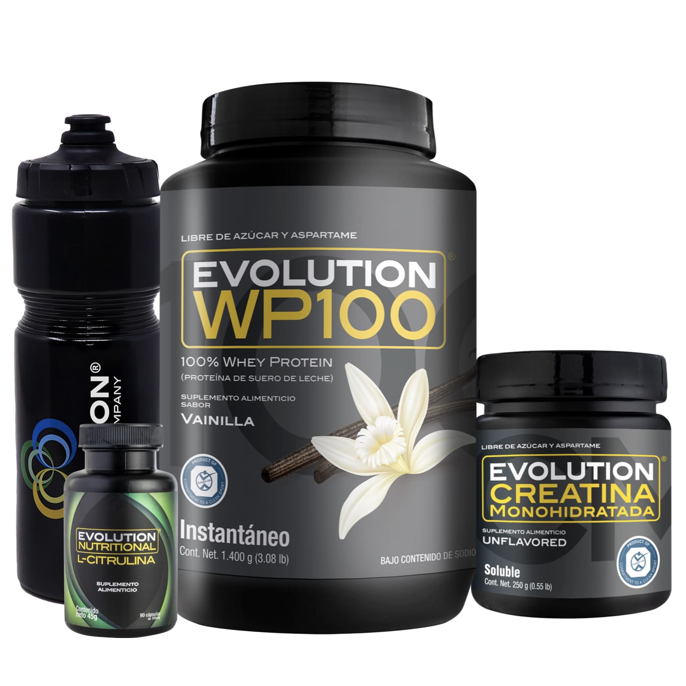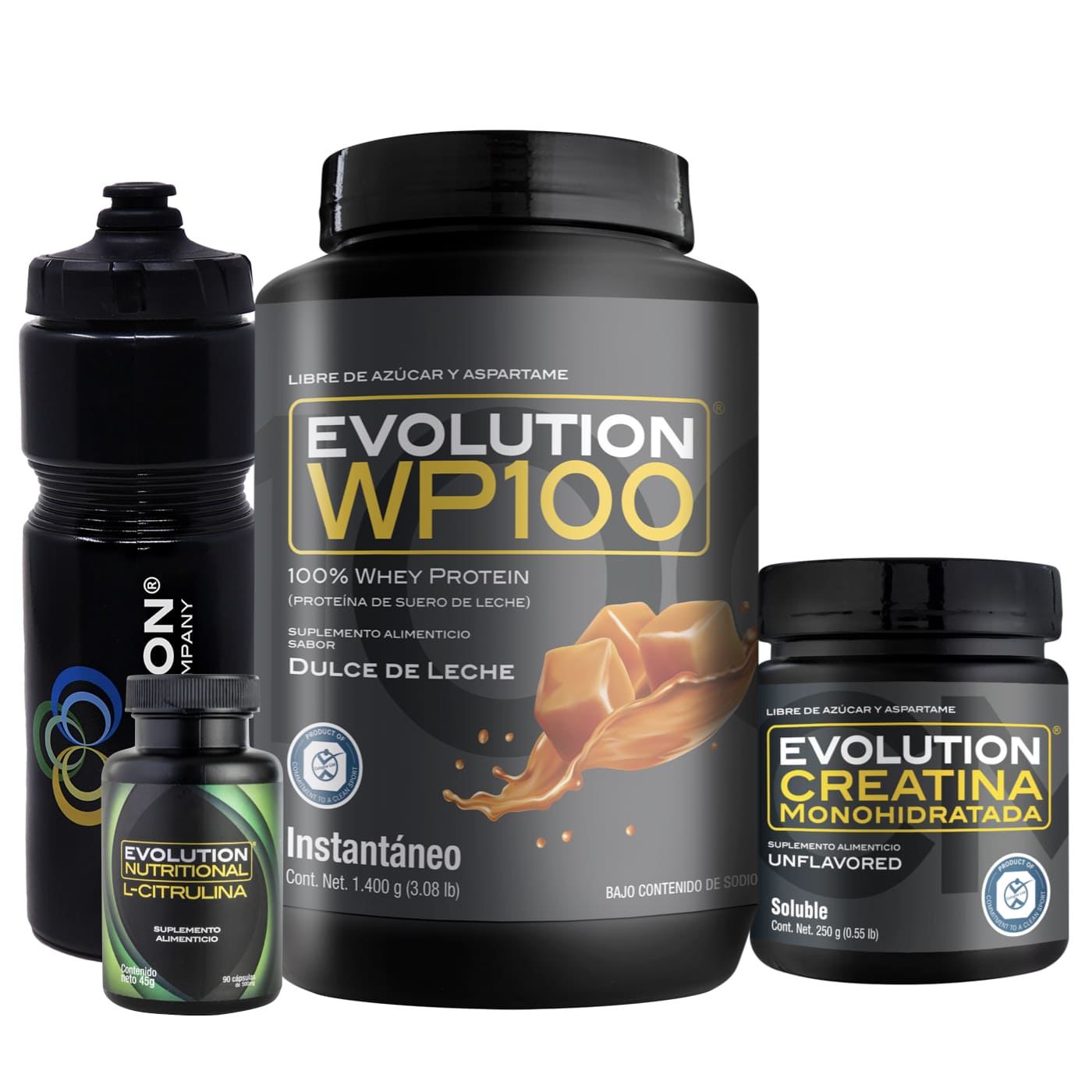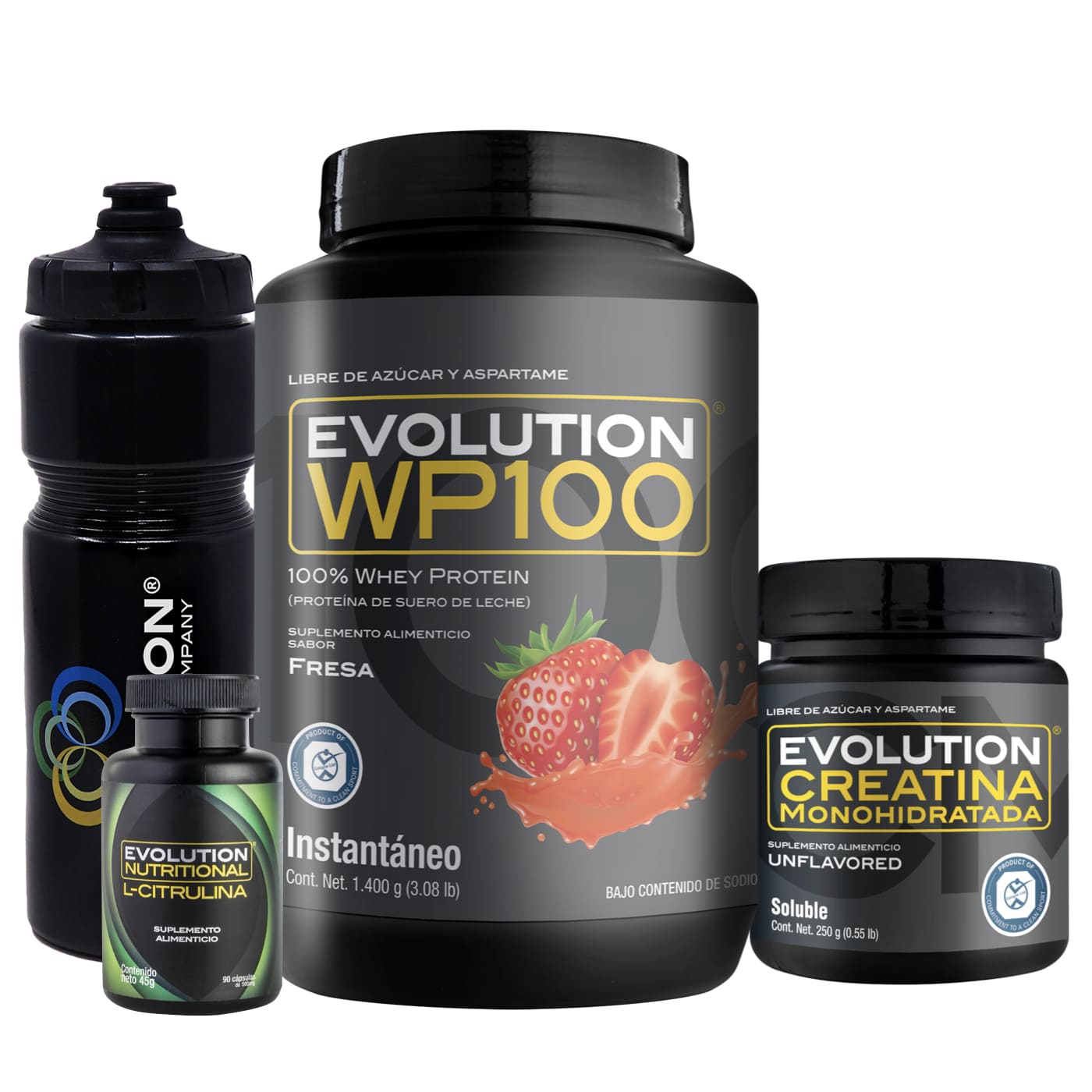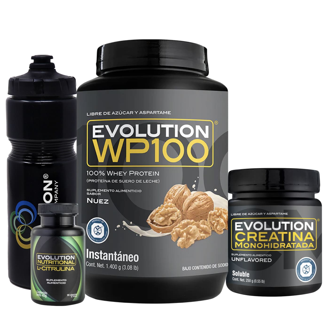 WP100 1,400 gramos + Creatina Monohidratada 250 gramos + L-Citrulina 90 cápsulas + (Squeeze 20 onzas de regalo 🎁)